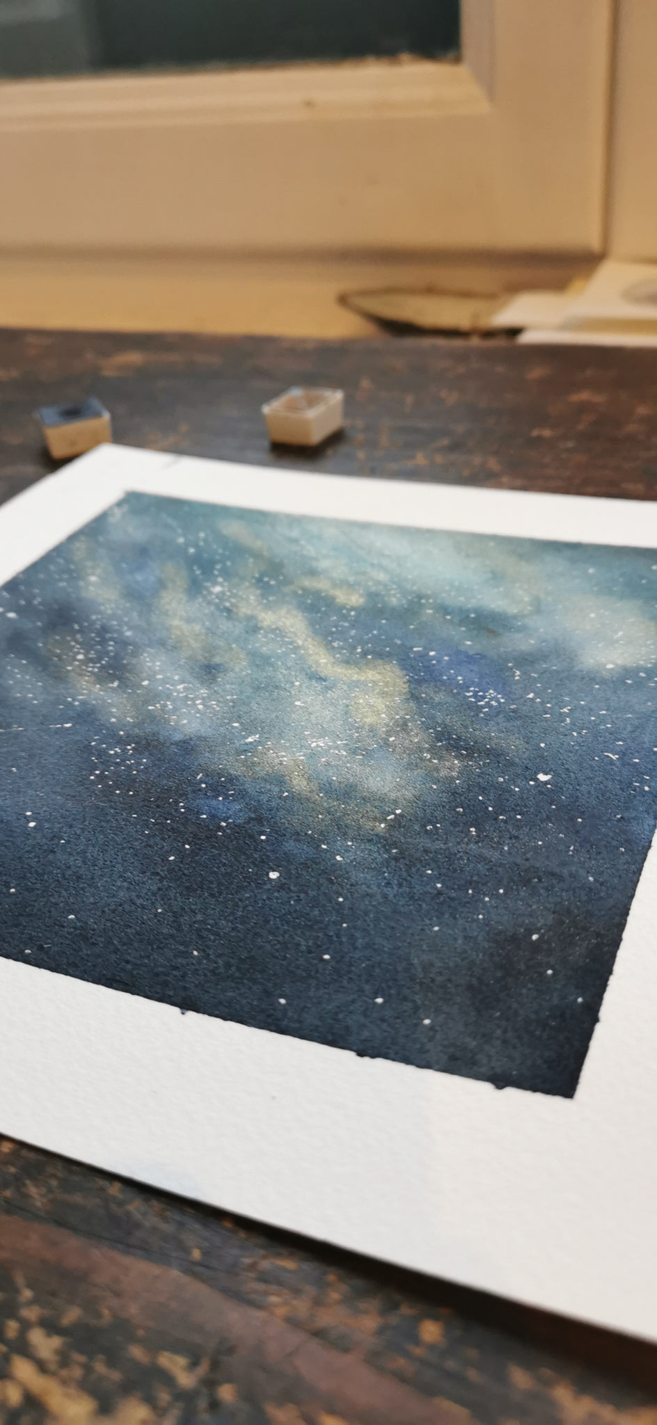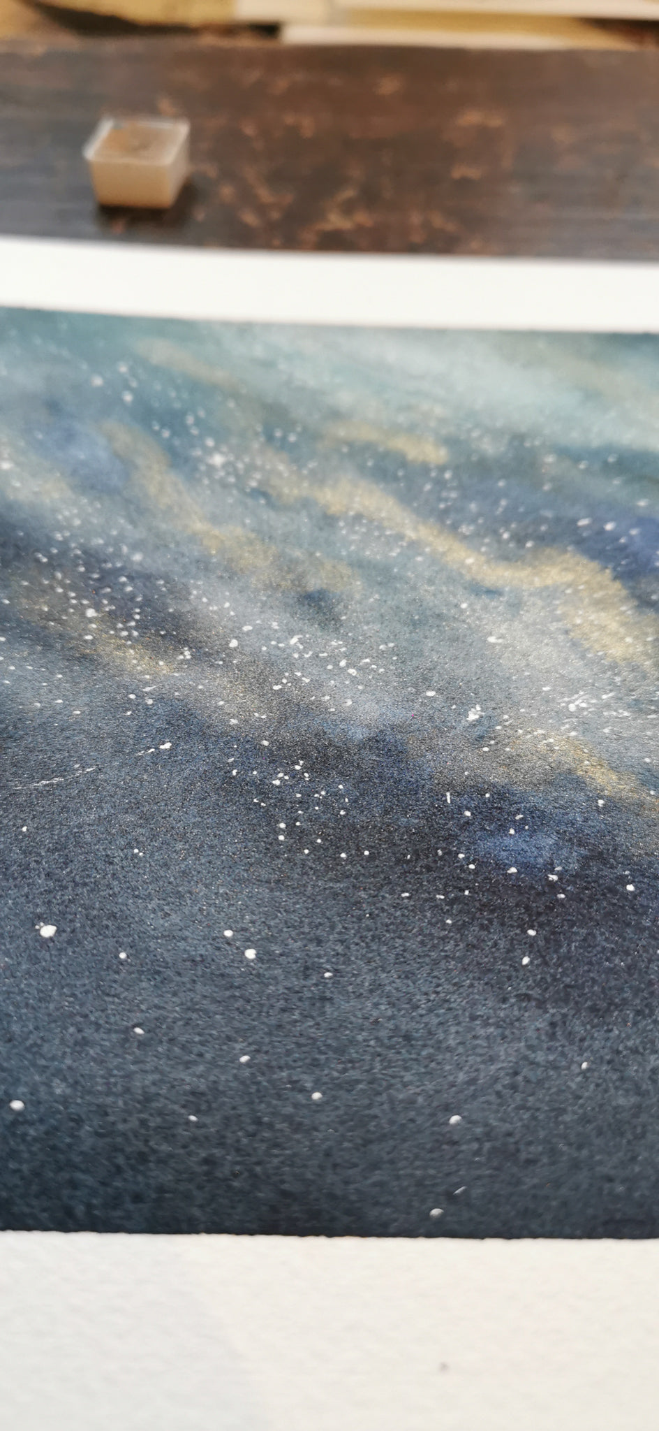 Œuvres peintes à la main avec une attention particulière aux nuances et à la profondeur des ciels étoilés.