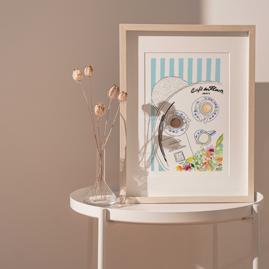 Plongez au cœur de PARIS revisité avec l’illustration “Instant parisien”. Les bâtiments parisiens se mêlent à une végétation luxuriante, transformant la capitale en une véritable jungle urbaine. Une manière poétique de voir Paris autrement et de se reconnecter à la nature qui nous manque tant.
