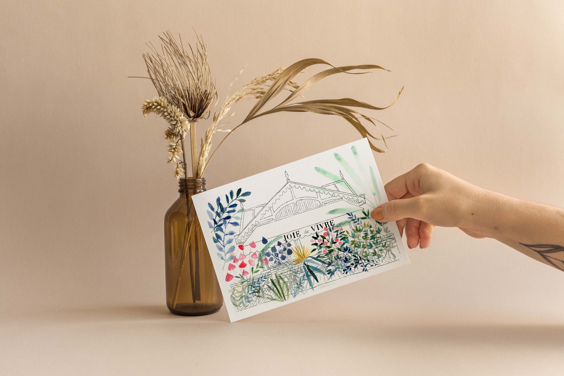 Plongez au cœur de la collection "JUNGLE URBAINE" revisité avec l’illustration “Joie de Vivre”. Les bâtiments parisiens se mêlent à une végétation luxuriante, transformant la capitale en une véritable jungle urbaine. Une manière poétique de voir Paris autrement et de se reconnecter à la nature qui nous manque tant.