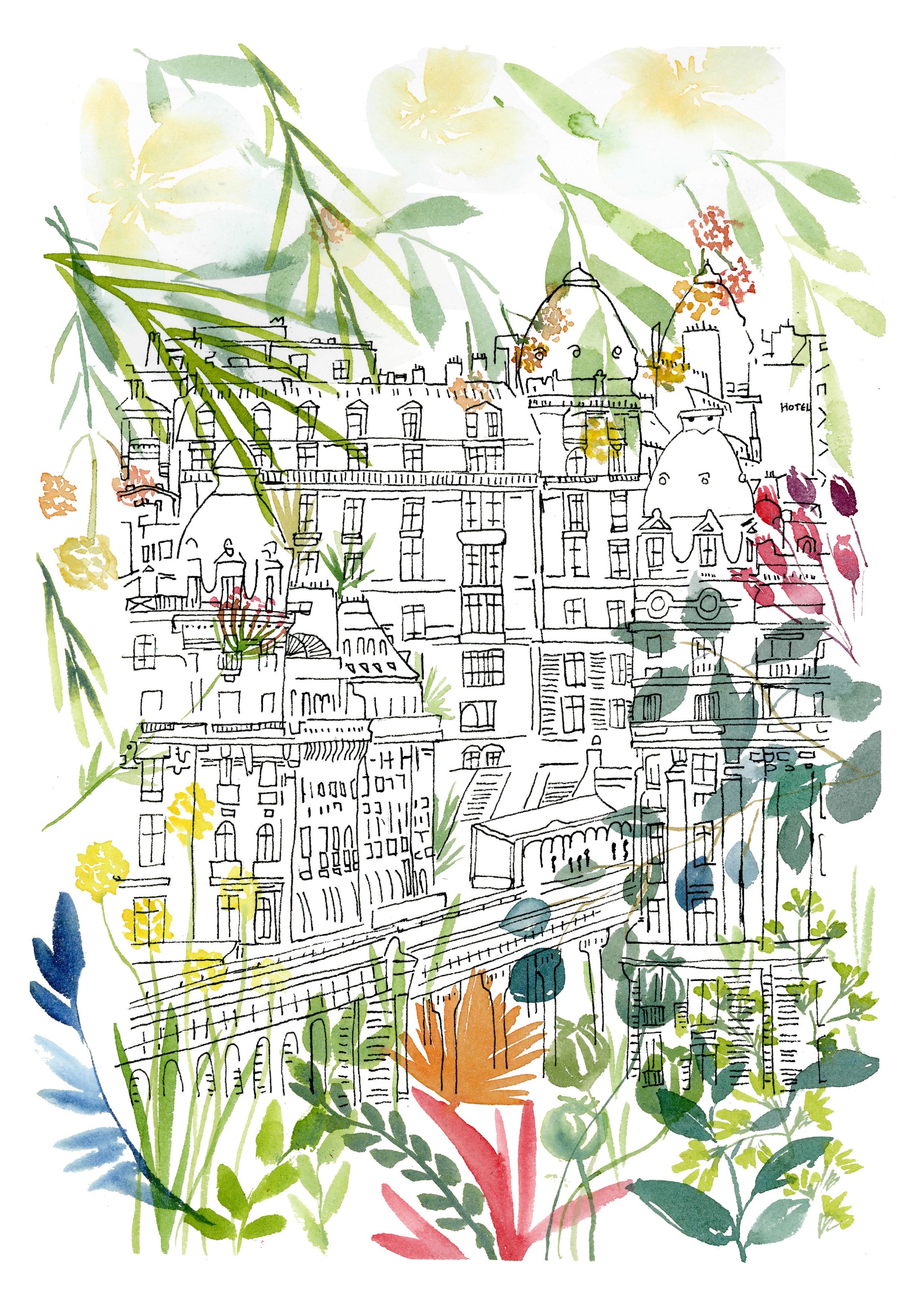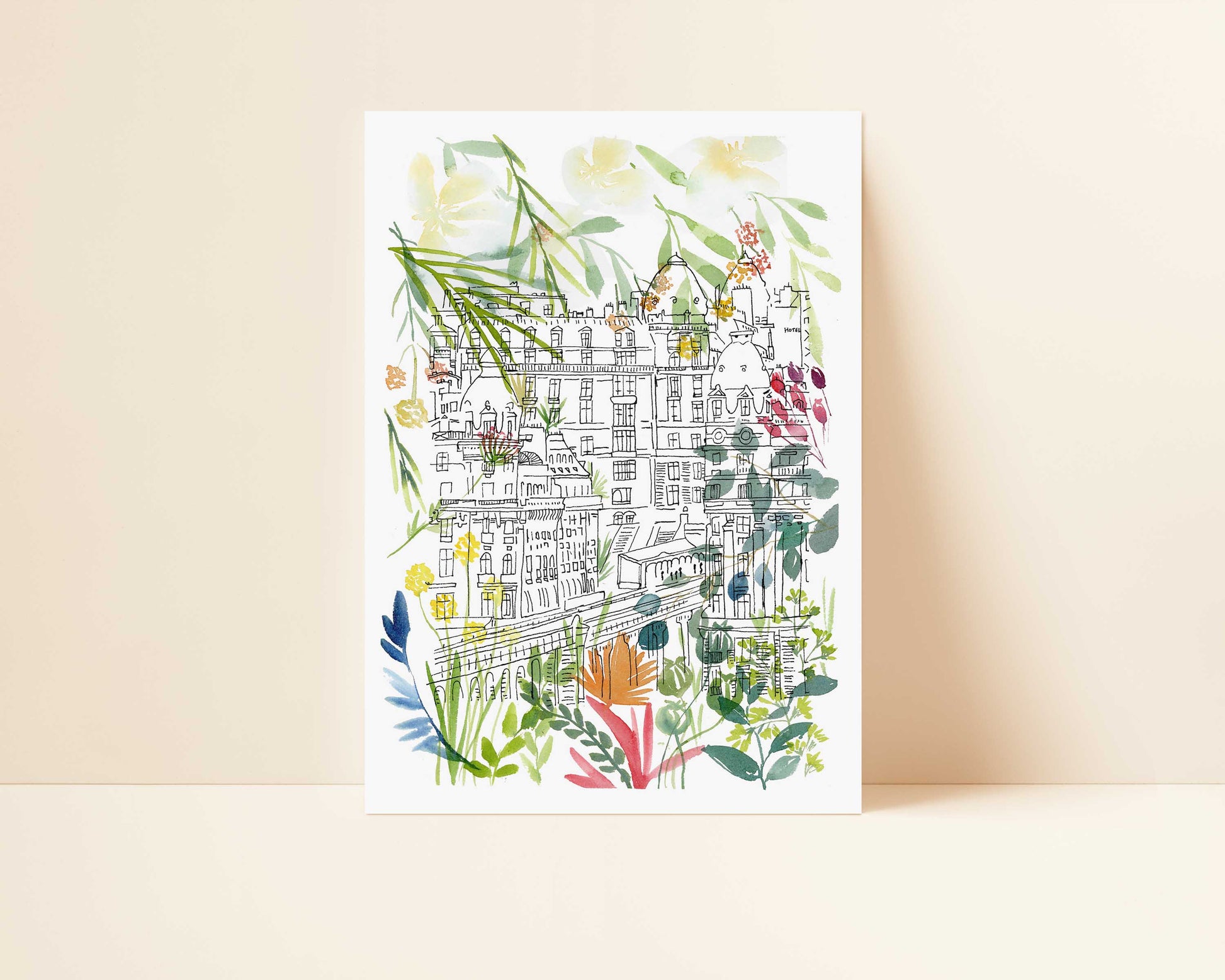 Plongez au cœur de PARIS revisité avec l’illustration “Le métro aérien”. Les bâtiments parisiens se mêlent à une végétation luxuriante, transformant la capitale en une véritable jungle urbaine. Une manière poétique de voir Paris autrement et de se reconnecter à la nature qui nous manque tant.