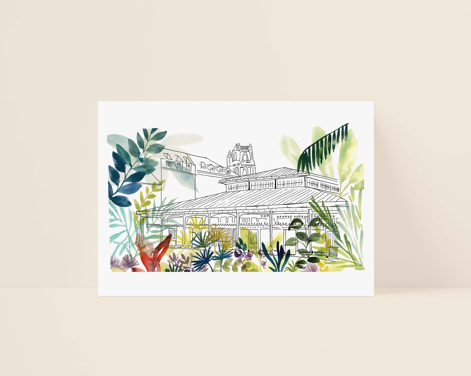 Découvrez Rennes autrement, à travers la collection “Jungle urbaine”, où les bâtiments emblématiques de la ville s’épanouissent au cœur d’une végétation luxuriante. Une balade poétique entre rues familières et nature débordante, un regard tendre et coloré porté sur la ville que tu habites.