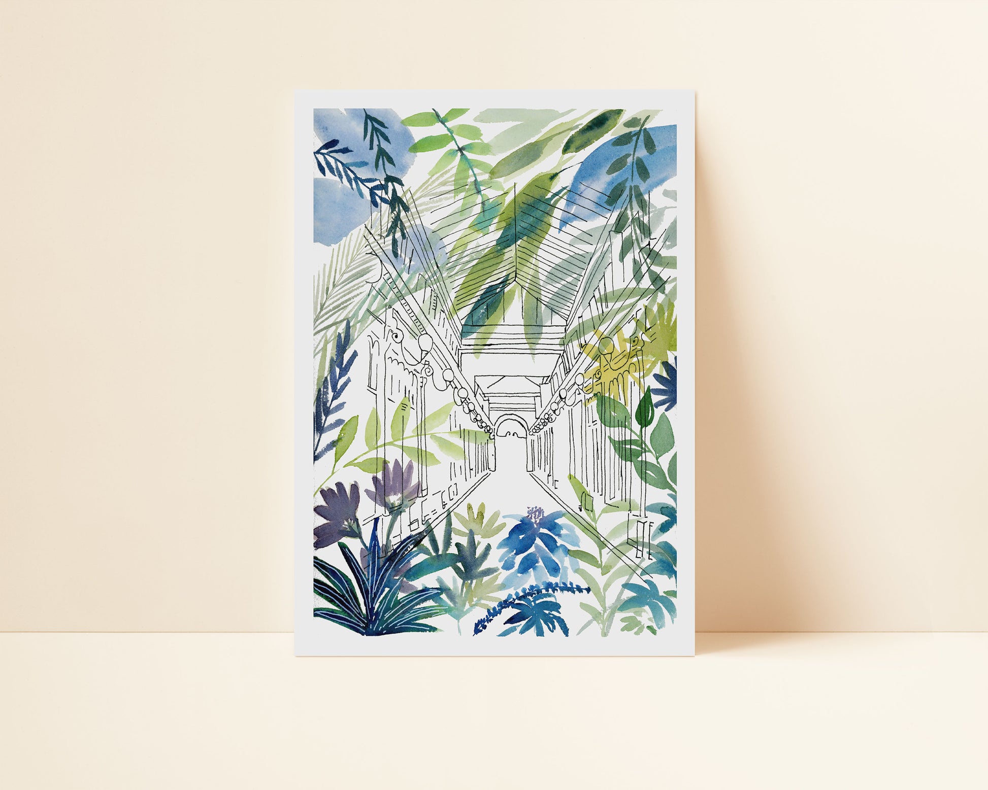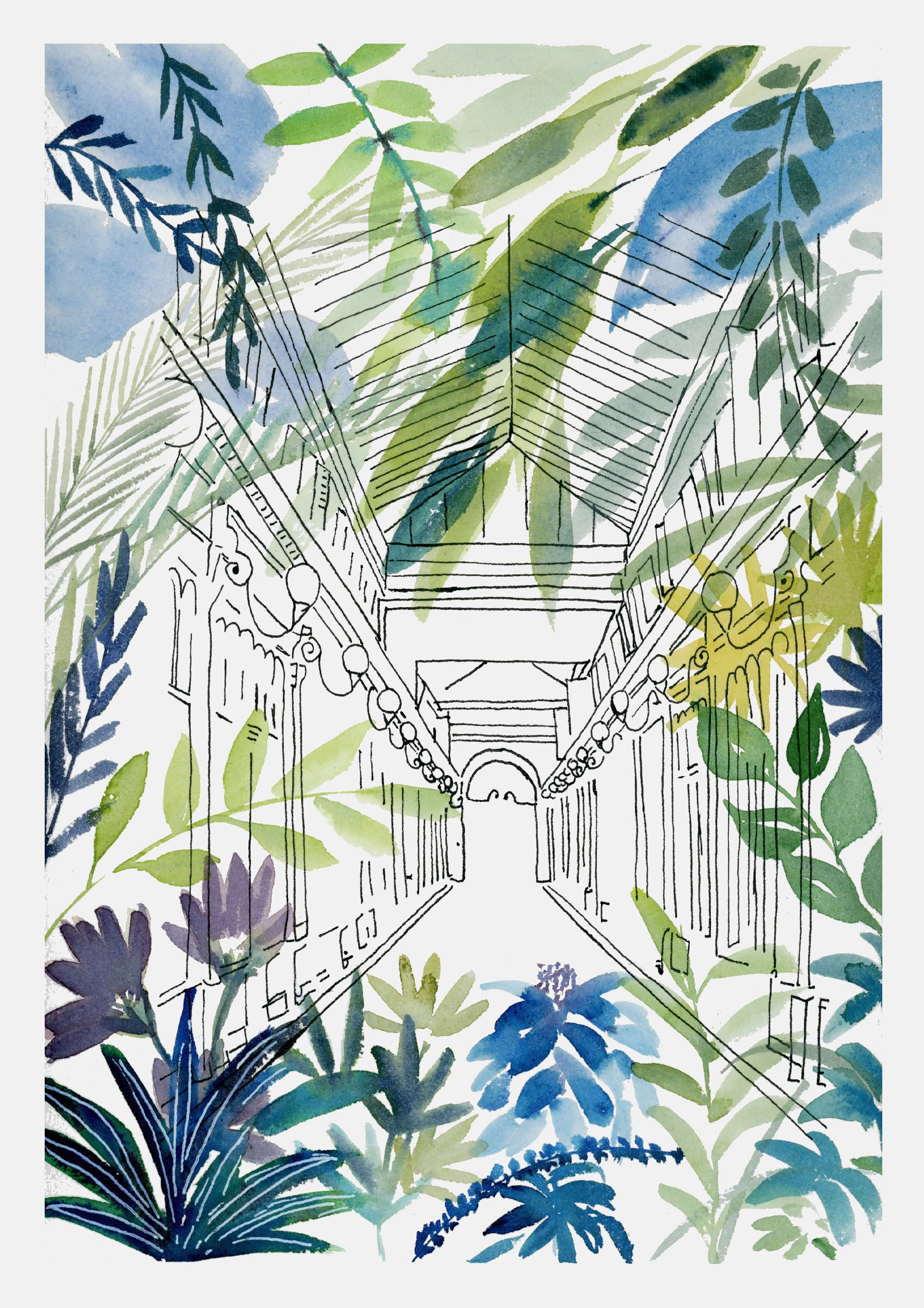 Plongez au cœur de PARIS revisité avec l’illustration “Le passage parisien”. Les bâtiments parisiens se mêlent à une végétation luxuriante, transformant la capitale en une véritable jungle urbaine. Une manière poétique de voir Paris autrement et de se reconnecter à la nature qui nous manque tant.